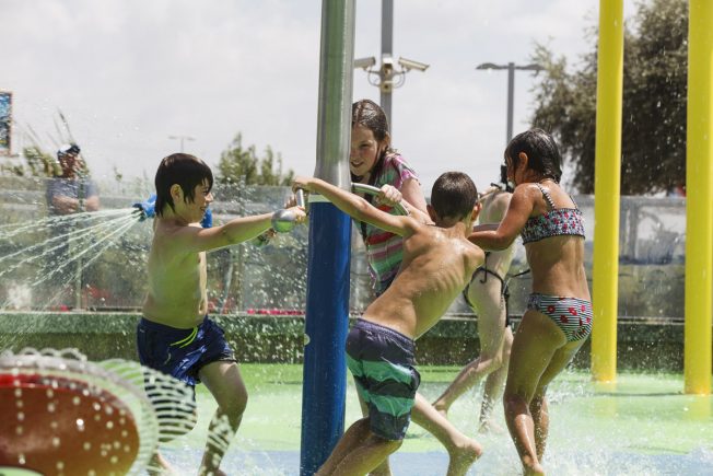 יום בבריכה: נקפוץ למים, נאכל קרטיבים, פעילויות בתוך ומחוץ למים.