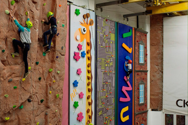 מתחם של קירות טיפוס מותאמים לילדים עם רמת בטיחות גבוהה ביותר (אבטחה אוטומטית חשמלית) הקירות מגוונים ברמתם, מאתגרים ובעלי אלמנטים שונים, כגון: אחיזות המופיעות ונעלמות, טיימרים המודדים את זמן הטיפוס, אורות מובנים המציגים מסלולי טיפוס על הקיר, קיר דמוי סלע ועוד…